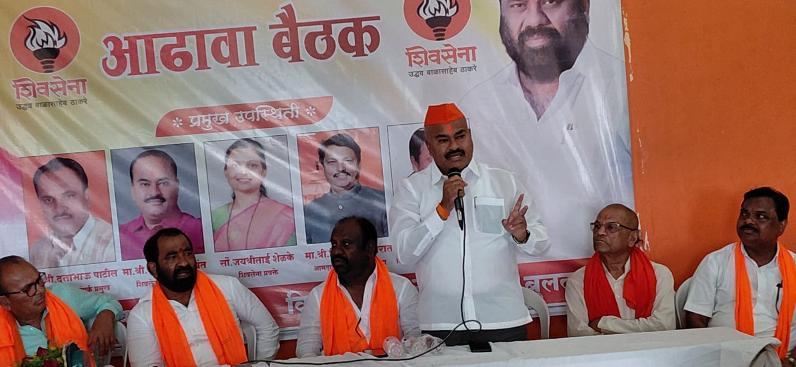 या बैठकीला संपर्क प्रमुख *नरेंद्र खेडेकर*, सहसंपर्क प्रमुख दत्ता पाटील, जिल्हा प्रमुख श्री वसंतराव भोजने व जालिंदर बुधवत”* यांचेसह उपजिल्हा प्रमुख तुकाराम काळपांडे,गजानन वाघ भिमराव पाटील, विधानसभा संघटक,सर्व तालुका प्रमुख रमेश ताडे, लखन गाडेकर,श्रीराम खेलदार , हर्षल आखरे, खामगाव विधानसभा व जळगाव जा विधानसभा मतदारसंघातील पदाधिकारी व शिवसैनिक हजर होते.