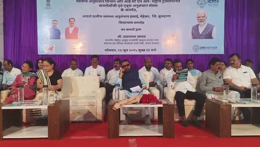महाराष्ट्रातील तिसऱ्या आदर्श ग्रामीण आरोग्य संशोधन केंद्राचा कोणाशीला समारंभ केंद्रीय आयुष्य आरोग्य कुटुंब कल्याण राज्यमंत्री प्रतापराव जाधव यांच्या हस्ते आज 23 जून रोजी झाला त्यानिमित्त आयोजित कार्यक्रमात ते बोलत होते ते पुढे म्हणाले की केंद्र सरकारच्यावतीने विविध कल्याणकारी योजना सर्वसामान्य लोकांच्या हितासाठी राबवल्या जात आहे शेवटच्या घटकापर्यंत उत्तम आरोग्यसेवा पोहोचवण्याचं काम पंतप्रधान नरेंद्र मोदी आणि आरोग्यमंत्री जे पी जी नड्डा यांच्या नेतृत्वात संपूर्ण देशांमध्ये सुरू आहे प्रत्येक व्यक्तीला आरोग्य सेवा ही सुलभ सहज आणि माफक दरात मिळावी यासाठी केंद्र सरकारच्या वतीने विविध कल्याणकारी योजना राबविण्यात येत आहे