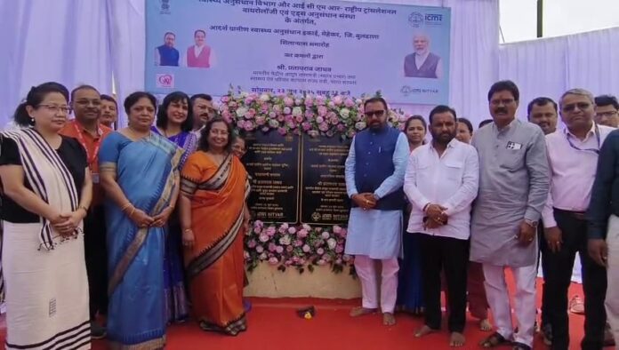 महाराष्ट्रातील तिसऱ्या आदर्श ग्रामीण आरोग्य संशोधन केंद्राचा कोणाशीला समारंभ केंद्रीय आयुष्य आरोग्य कुटुंब कल्याण राज्यमंत्री प्रतापराव जाधव यांच्या हस्ते आज 23 जून रोजी झाला त्यानिमित्त आयोजित कार्यक्रमात ते बोलत होते ते पुढे म्हणाले की केंद्र सरकारच्यावतीने विविध कल्याणकारी योजना सर्वसामान्य लोकांच्या हितासाठी राबवल्या जात आहे शेवटच्या घटकापर्यंत उत्तम आरोग्यसेवा पोहोचवण्याचं काम पंतप्रधान नरेंद्र मोदी आणि आरोग्यमंत्री जे पी जी नड्डा यांच्या नेतृत्वात संपूर्ण देशांमध्ये सुरू आहे प्रत्येक व्यक्तीला आरोग्य सेवा ही सुलभ सहज आणि माफक दरात मिळावी यासाठी केंद्र सरकारच्या वतीने विविध कल्याणकारी योजना राबविण्यात येत आहे