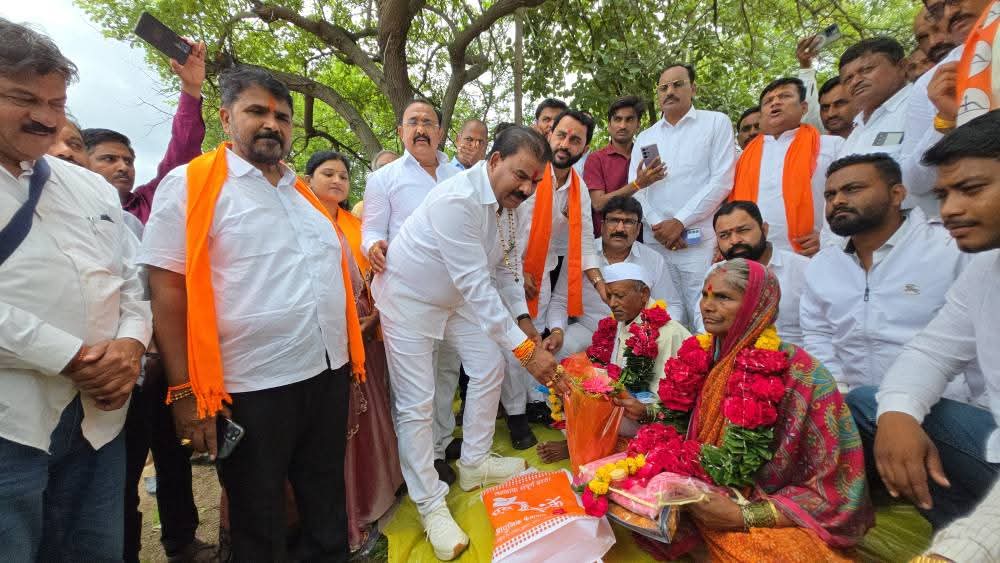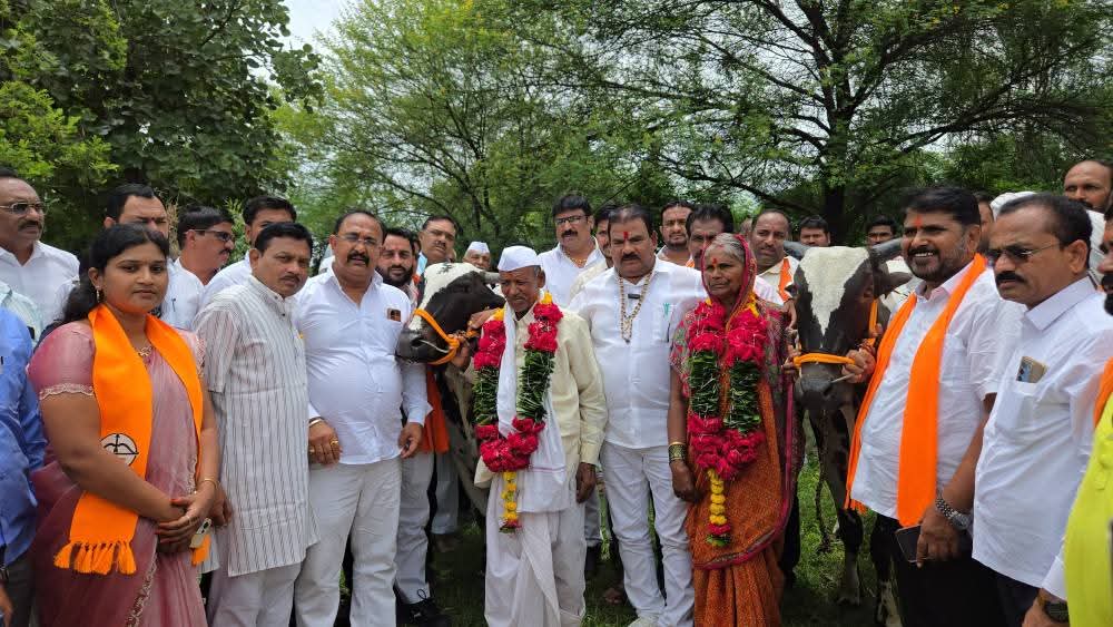 आज दिनांक ५ जुलै २०२५ रोजी मी स्वतः हाडोळती येथे जाऊन त्या वृद्ध शेतकरी दांपत्याचा पाद्यपूजन केलं… त्यांच्या पायांना जल अर्पण करून नम्र वंदन केलं. मला आज खरंच असं वाटलं – साक्षात विठ्ठल-रुक्मिणीचं पूजन करतोय…!