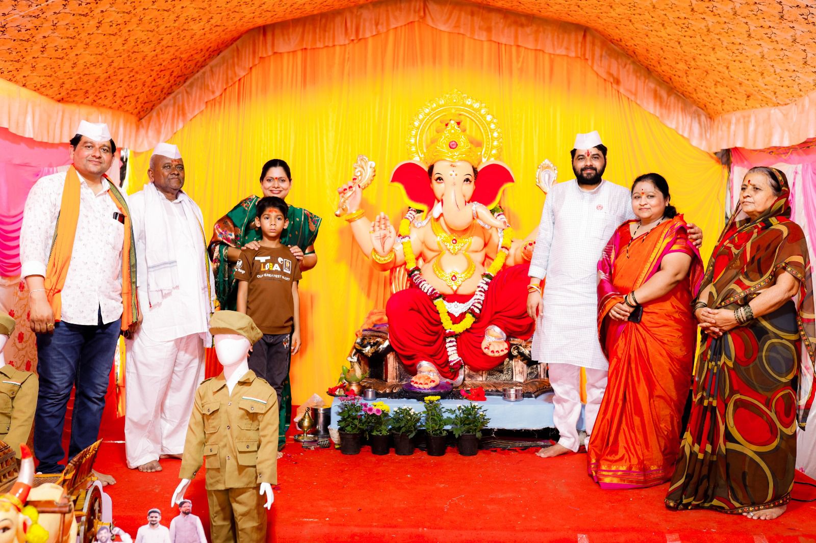- क्रांतिकारी राजा श्री गणरायासमोर ॲड. शर्वरी तुपकर यांच्या संकल्पनेतून मांडण्यात आलेला देखावा आकर्षणाचे केंद्र ठरत आहे. बैलगाडीवर उभे राहून आसूड उभारणारे रविकांत तुपकर, त्यांच्या दिमतीला असलेला शेतकरी कष्टकऱ्यांचा,फौजफाटा, पोलिसांचा बंदोबस्त असा एकंदरीत शेतकऱ्यांच्या न्याय मागण्यांसाठीच्या एल्गार मोर्चाचा देखावा क्रांतिकारी राजासमोर हुबेहूब थाटण्यात आला आहे.हा देखावा सगळ्यांना आकर्षित