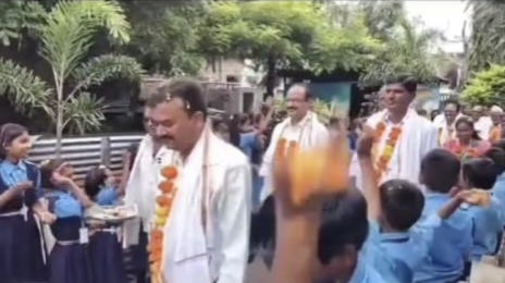 सर्वप्रथम शाळा व्यवस्थापन समिती, सर्व पालक ,गावातील सर्व प्रतिष्ठित व्यक्तींनी ढोल ताश्यांच्या गजरात शिक्षकांची भव्य दिव्य मिरवणूक काढून शाळेच्या मुख्य प्रवेशद्वारावर सर्व शिक्षकांचा शाल- श्रीफळ पुष्पहार घालून यथोचित सन्मान करून शिक्षकांच्या अंगावर विद्यार्थी व पालकांनी पुष्पवृष्टी करून सर्व शिक्षकांना सन्मानपूर्वक मंचकावर स्थानापन्न केले .