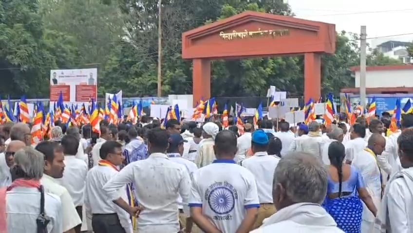 समस्त बुद्ध धर्माचे श्रद्धास्थान असलेल्या बिहार येथील महाबोधी बुद्ध विहार, बौद्ध समाजाच्या ताब्यात देण्यात यावे त्याचबरोबर बुद्ध विहारसंदर्भात 1949 सालचा कायदा रद्द करण्यात यावा, यासाठी संपूर्ण देशभरात पुन्हा एकदा आंदोलन उभारले आहे.. भैय्यासाहेब आंबेडकर यांच्या स्मृतिदिनाच्या निमित्ताने संपूर्ण राज्यभर ठीक ठिकाणी आंदोलन करण्यात आले, त्याच पार्श्वभूमीवर बुलढाणा जिल्हाधिकारी कार्यालयावर देखील भव्य आक्रोश मोर्चा काढण्यात आला.. वंचित बहुजन आघाडी आणि भारतीय बौद्ध महासभेच्या संयुक्त विद्यमाने हा मोर्चा काढण्यात आला.. ज्यामध्ये जिल्हाभरातील बौद्ध समाज बांधव, भगिनी, समता सैनिक दल मोठ्या संख्येने सहभागी झाले होते.. आपल्या मागणीसाठी जिल्हाधिकाऱ्यां मार्फत महामहीम राष्ट्रपती यांना निवेदन पाठवण्यात आले आहे…