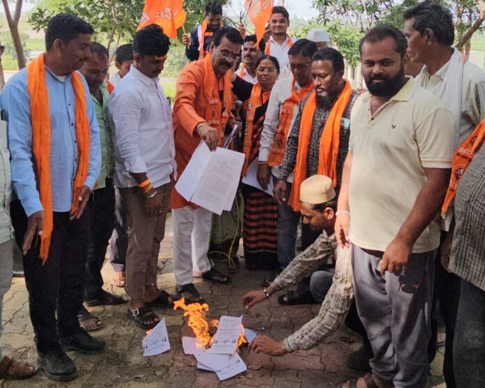 ९ ऑक्टोबर च्या महाराष्ट्र शासनाच्या शासन आदेशा मधून लोणार व मेहकर तालुका नैसर्गिक आपत्ती निवारण सहाय्य योजने मधून वगळण्याच्या विरोधात शिवसेना उबाठा पक्षाचे जिल्हा संघटक डॉ. गोपाल बछिरे यांनी तहसील समोर शासन निर्णयाची होळी करून आपल्या भावना व्यक्त केल्या