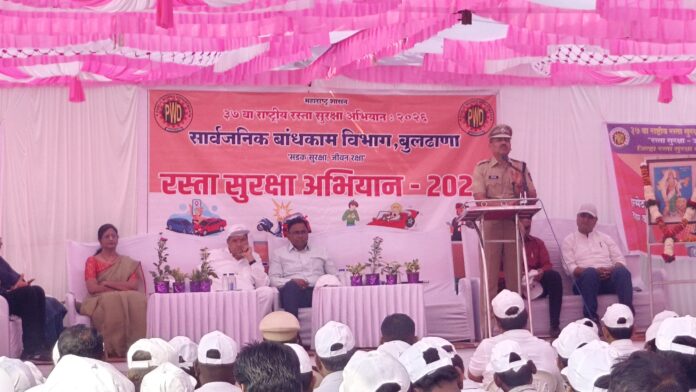 रस्ता अपघातांचे वाढते प्रमाण लक्षात घेता नागरिकांमध्ये वाहतूक नियमांविषयी जागरूकता निर्माण करण्याच्या उद्देशाने रस्ता सुरक्षा अभियानानिमित्त बुलढाणा बस स्थानक परिसरात जनजागृती कार्यक्रम यशस्वीपणे पार पडला. हा कार्यक्रम सार्वजनिक बांधकाम विभाग, बुलढाणा अर्बन सहकारी पतसंस्था आणि एसटी महामंडळ यांच्या संयुक्त विद्यमाने आयोजित करण्यात आला होता.