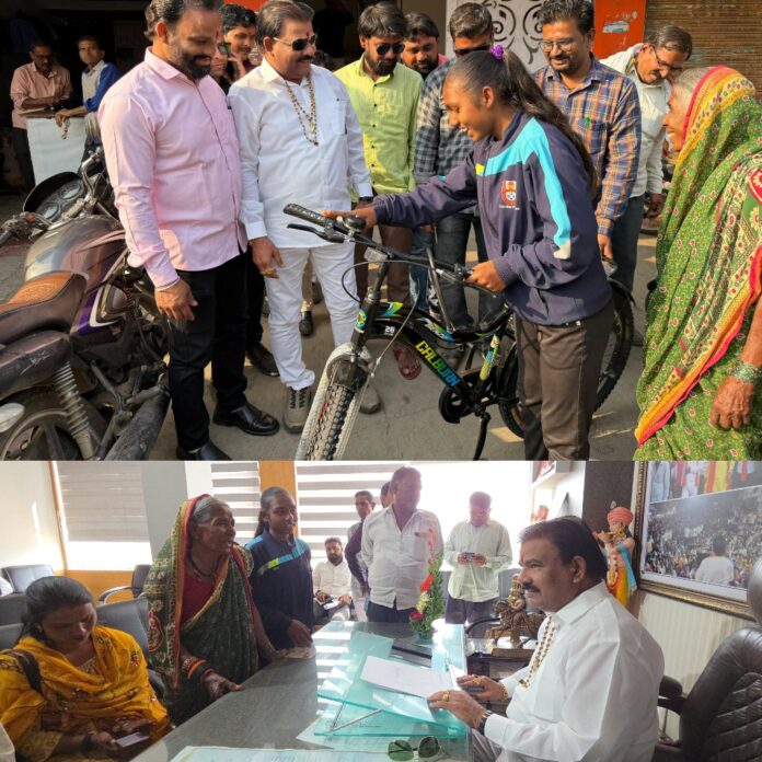 चोरीला गेलेल्या सायकलीनंतरही न थांबला खेळाचा प्रवास — आमदार संजय गायकवाड यांच्याकडून विद्यार्थिनीला तात्काळ नवी सायकल भेट….