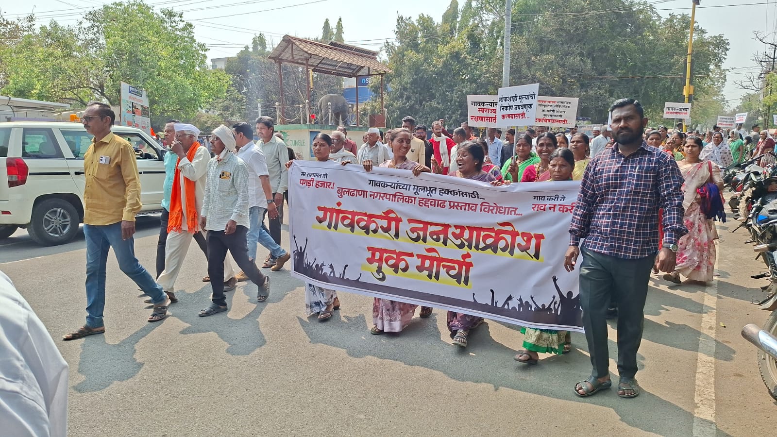जिल्हा मुख्यालय असलेल्या बुलढाणा शहरात बुलढाणा नगरपालिका हद्दवाढ प्रस्तावाच्या विरोधात गांवकरी जनआक्रोश मूक मोर्चात सागवन, सुंदरखेड, येळगाव, माळविहीर येथून आलेल्या हजारो गावकऱ्यांच्या प्रचंड जनसमुदयाने सर्वाचे लक्ष वेधले.