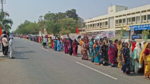 गाव बचाव कृती समितीच्या वतीने मोर्चातील सागवन, सुंदरखेड, माळविहिर, येळगाव येथून आलेल्या प्रत्येक गावच्या महिला प्रतिनिधी यांच्या शिष्टमंडळाने जिल्हाधिकाऱ्यांना निवेदन सादर केले.