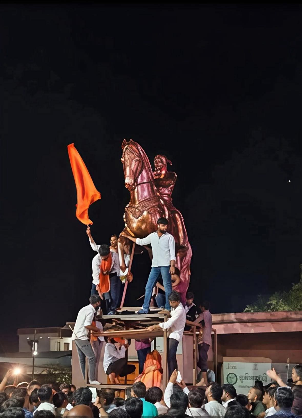 पुतळा हटवण्याच्या वादानंतर रात्री वाजतगाजत स्थापना; गावात तणावानंतरही शांततेचे आवाहन